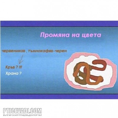 Паразити: Само при много тежко опаразитяване с обикновено око може да бъдат забелязани паразити във фекалите.